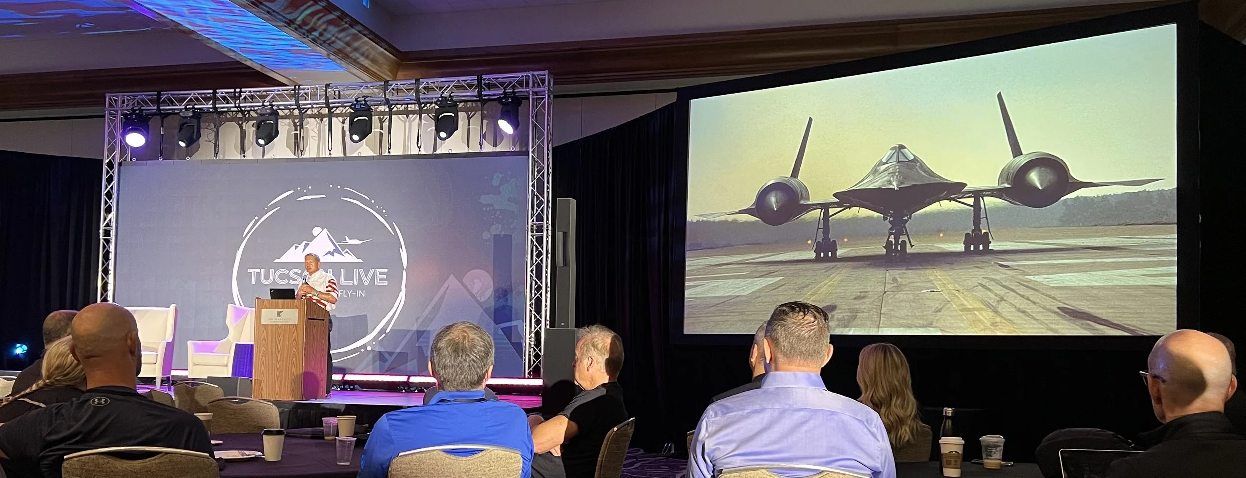 Friday morning’s keynote speaker, Brian Shul, was captivating. Brian was badly burned in a crash of his Air Force jet in Vietnam, then rescued and all but written off for dead. He spent a full year in the Air Force’s burn ward in San Antonio, undergoing 15 major operations. Against all odds, he was not only cleared for active flight duty, but succeeded in battling his way to become the lead pilot for the iconic SR-71 Blackbird. His anecdotes of flying the world’s highest flying and fastest plane were engrossing, and he recounted a pilot-tailored version of his now-viral and not-to-be-missed “speed check” story.