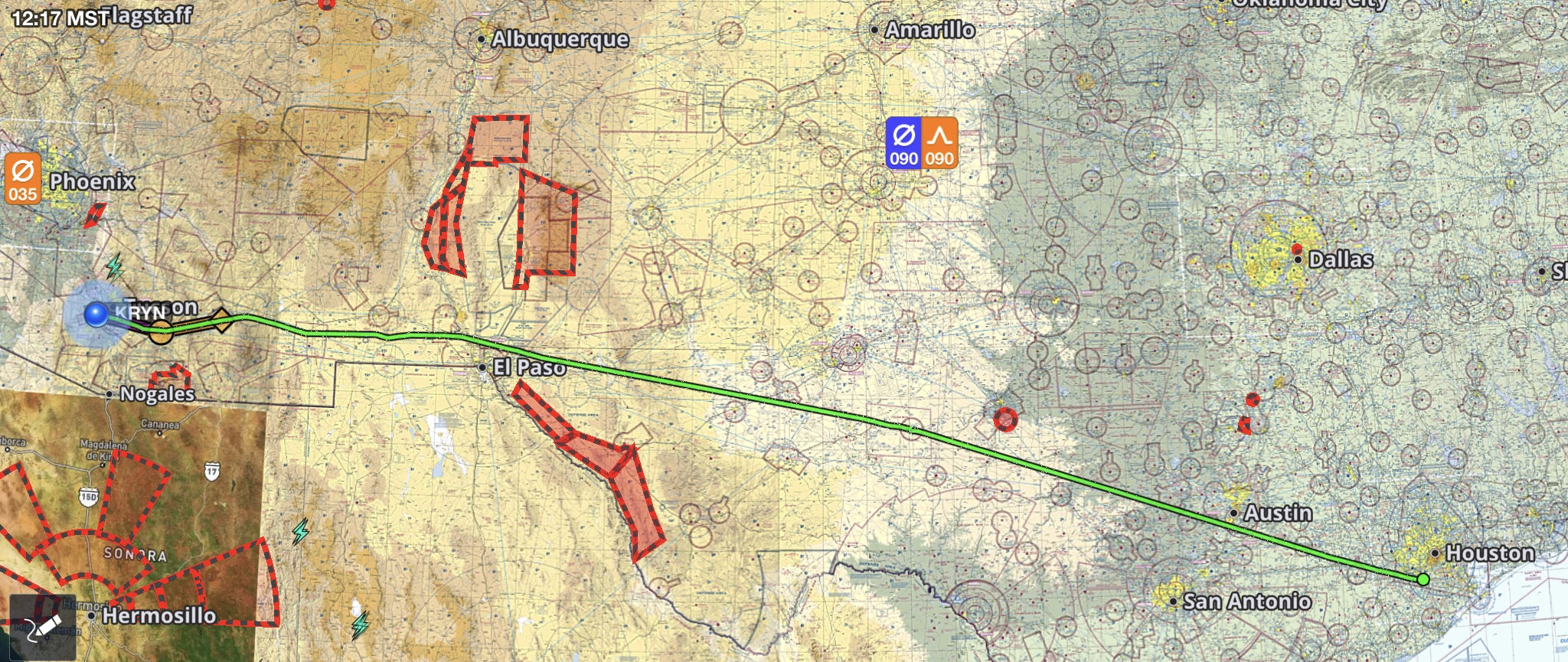 It’s an easy flight from Houston (AXH) to Tucson: a straight shot would clip Mexican airspace, so it’s direct to El Paso over Texas’s highest point, Guadalupe Peak, then a slight dogleg left, direct to Tucson. For a variety of reasons, I ended up not flying the Mirage to the Mirage convention, but instead flew our Beech Bonanza. While the Mirage’s higher-flying capabilities would have made the New Mexico and Arizona mountains irrelevant, I did a bit of zig-zagging in the Bonanza to avoid overflying the highest peaks. That might explain why, along the way, AT&T apparently thought I got lost and sent me a “Welcome to Mexico” text mid-flight….
